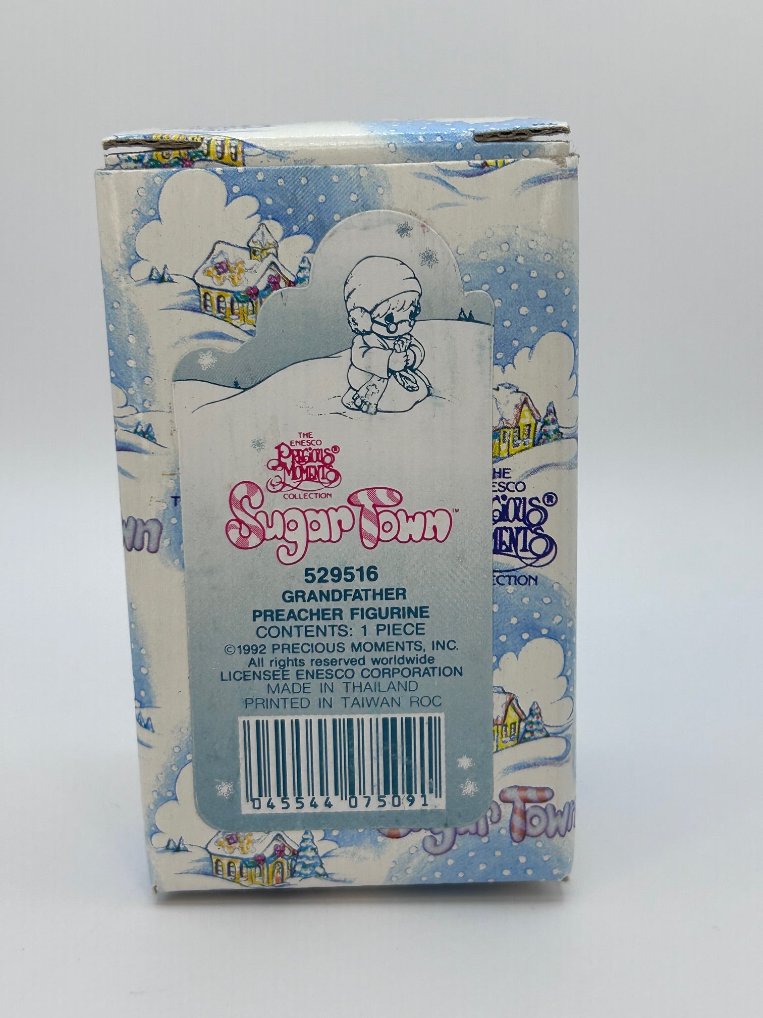 Precious Moments Vintage 1992 Sugar Town Grandfather Preacher Figurine Porcelain Collectible Original Box Mint Condition by Enesco 529516. 100% of sale benefits charity.
