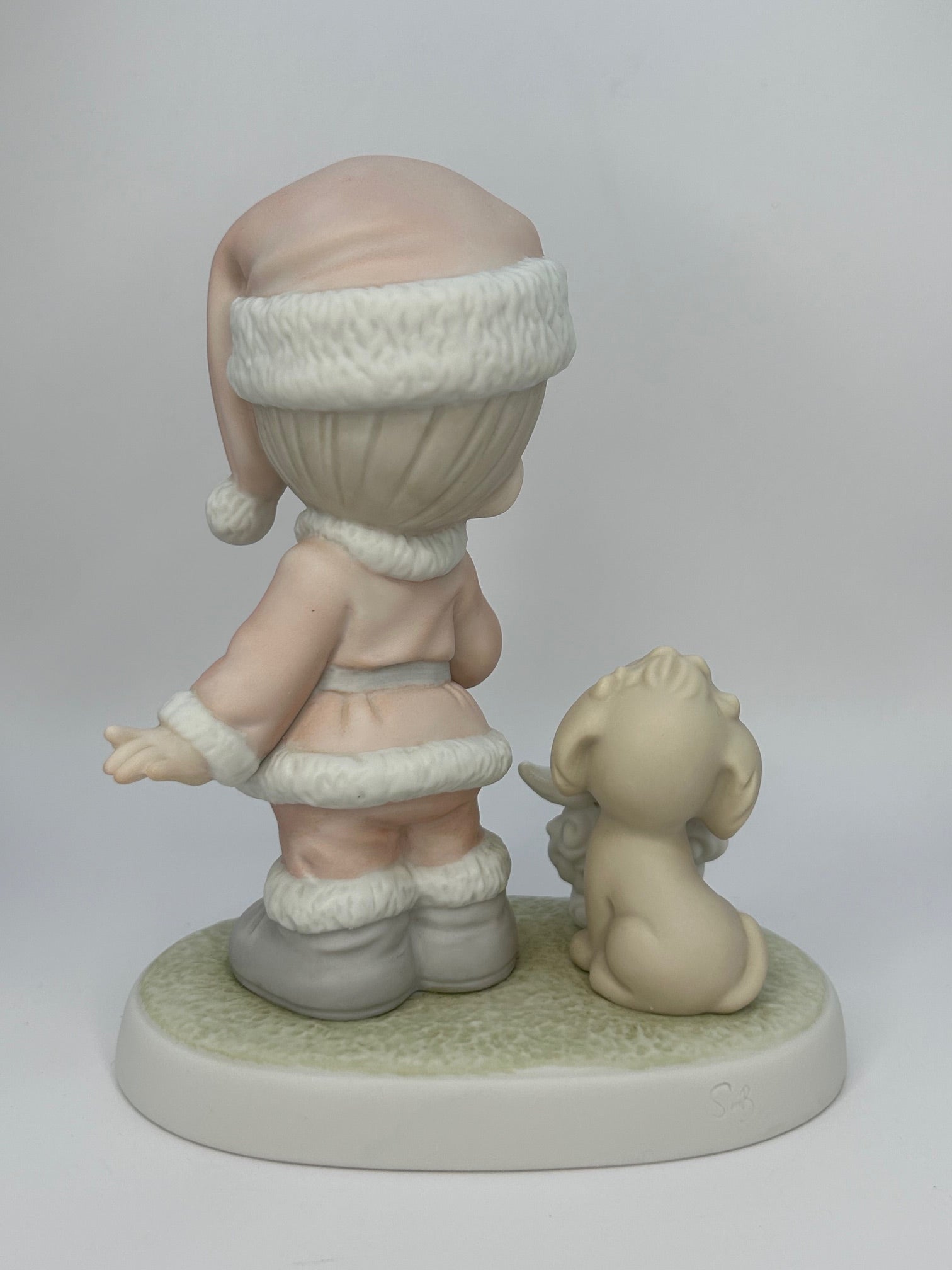 Precious Moments Vintage 1992 Wishing You a Ho Ho Ho Hand Painted Porcelain Collectible Figurine Original Box Mint Condition by Enesco Samuel J.Butcher 527629. 100% of sale benefits charity.
