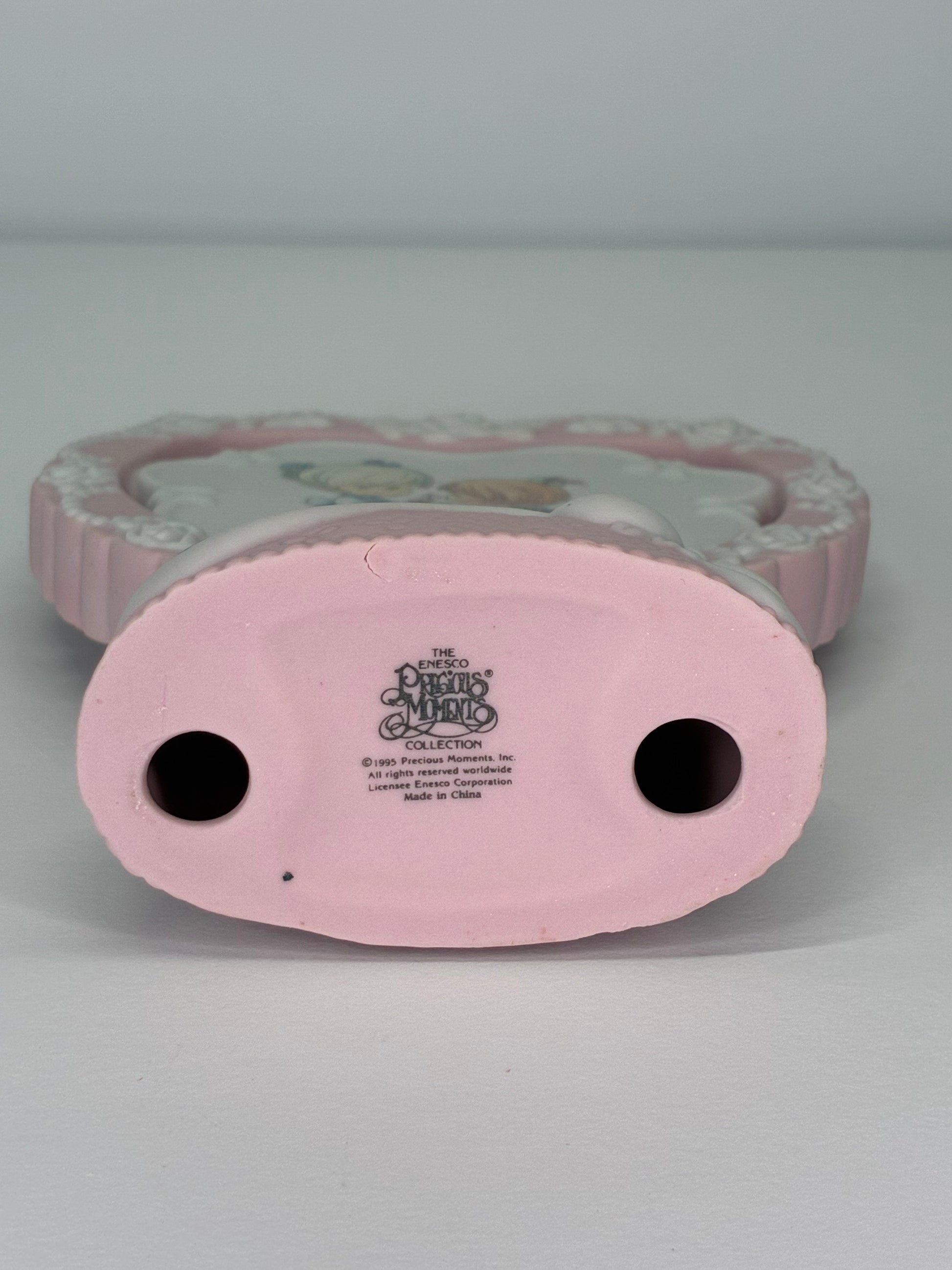 Precious Moments Vintage 1995 For My Sister Heart Shaped Plaque Girl Smelling Flower