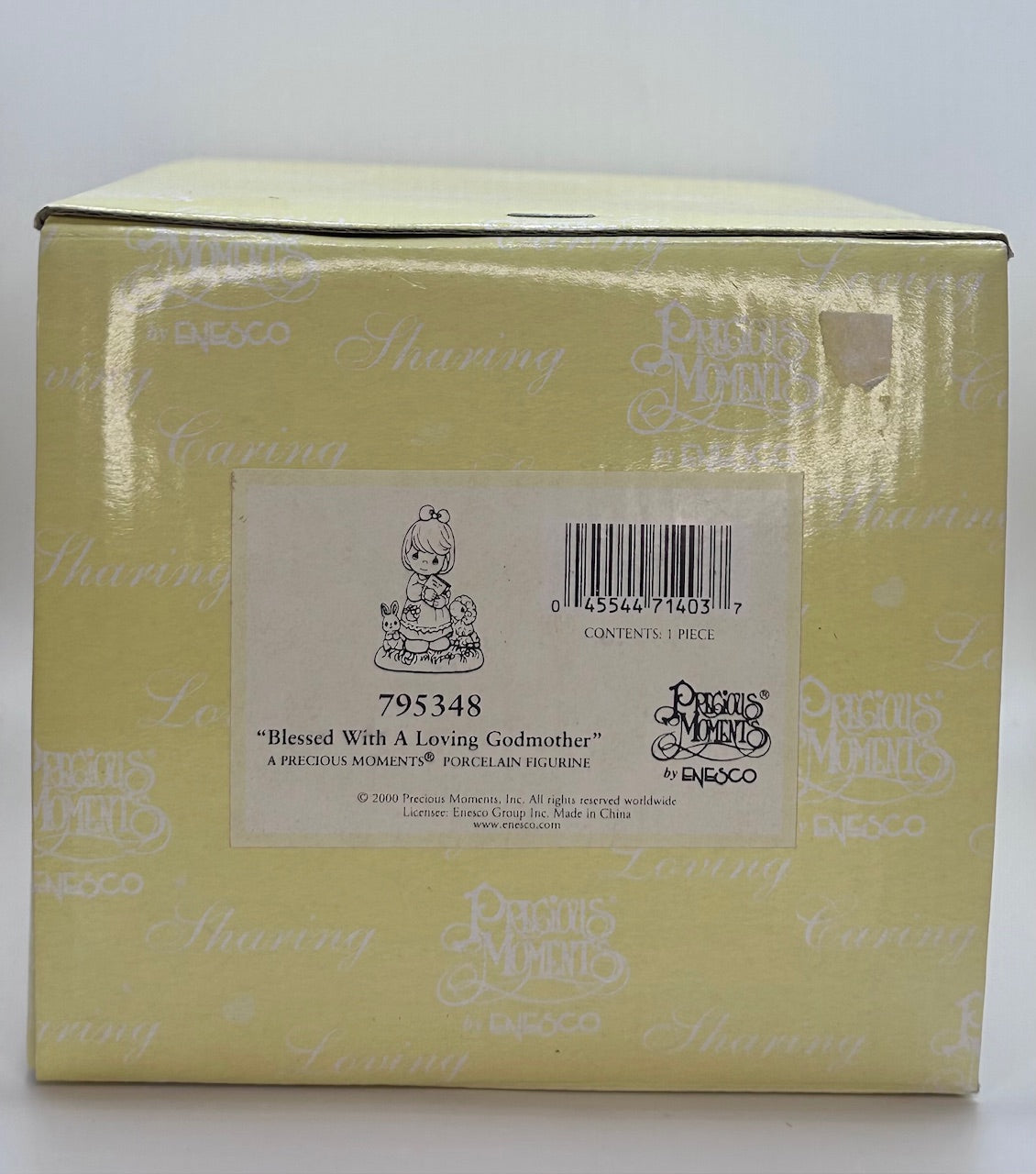 Precious Moments Vintage 2000 Blessed With A Loving Godmother Hand Painted Porcelain Collectible Figurine Original Box Mint Condition by Enesco Jonathan David 795348. 100% of sale benefits charity.