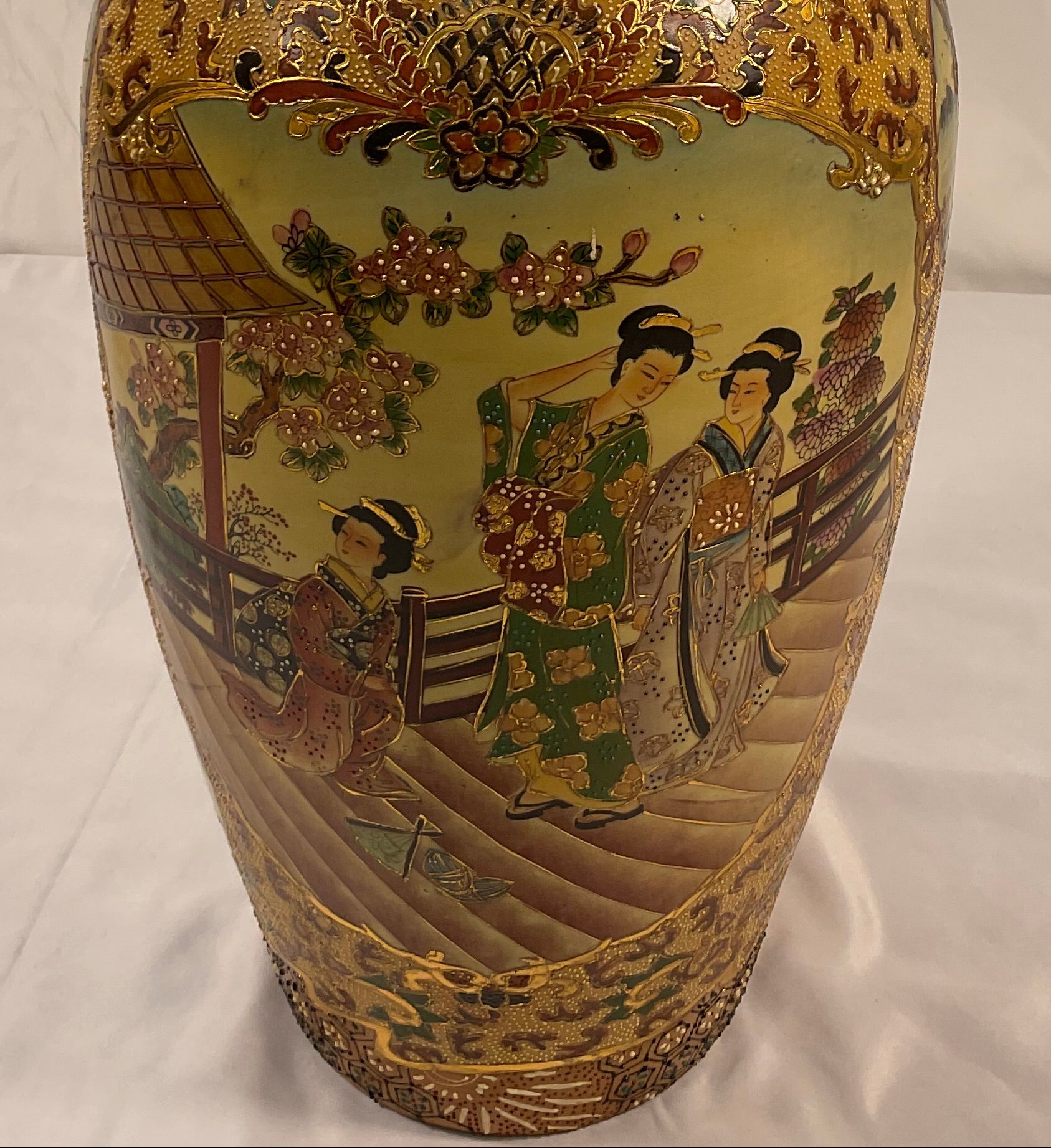 Royal Sasuma Vintage Hand-Painted Urn Shaped Porcelain Vase Made in China Ornate Japanese Design 2' Ft. Feet Height, 1' Foot Wide, and 155.5 oz Weight.