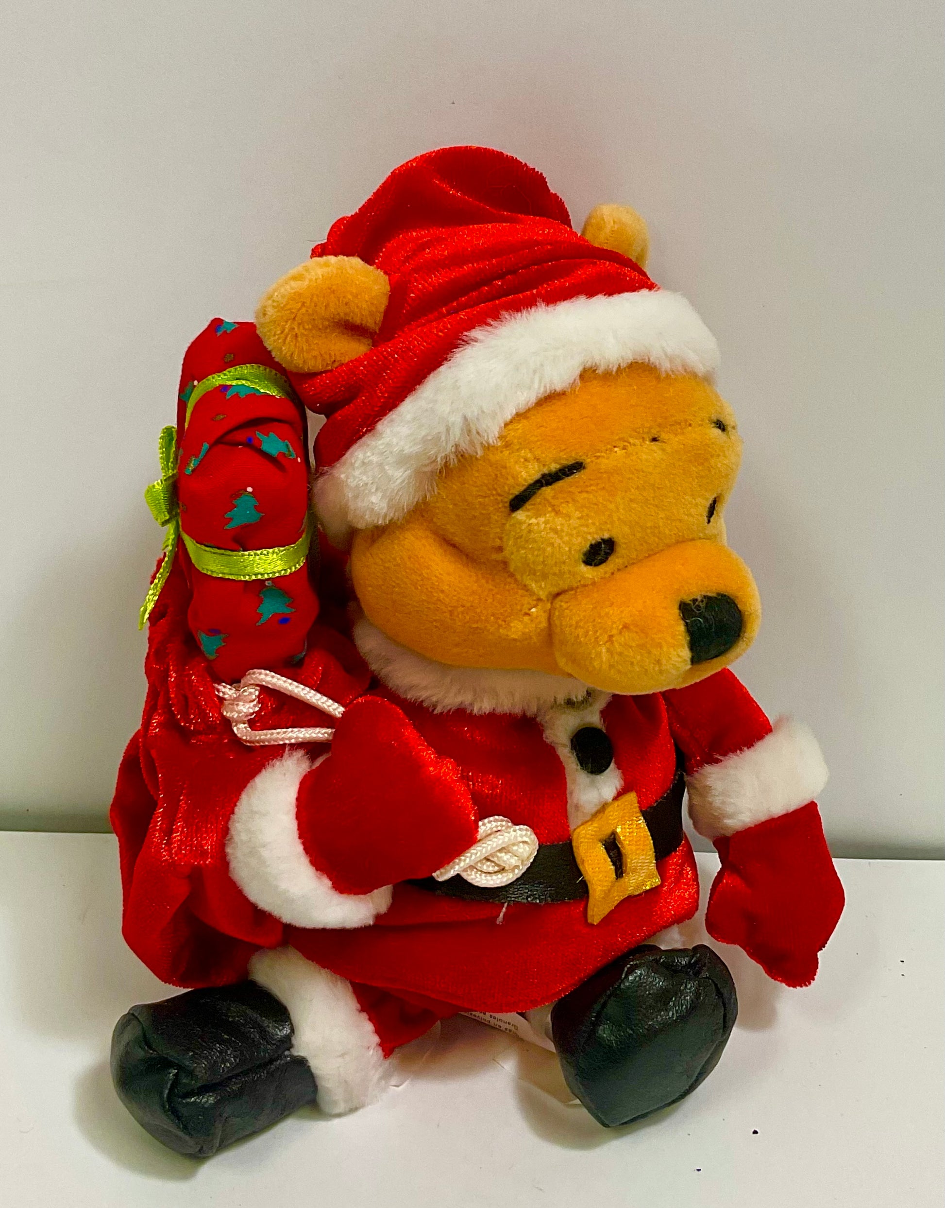 Santa Claus Winnie the Pooh Bear & Friends Vintage Christmas Holiday Mini Beanbag Beanie Plush Disney Collectible. 100% of sale benefits charity.