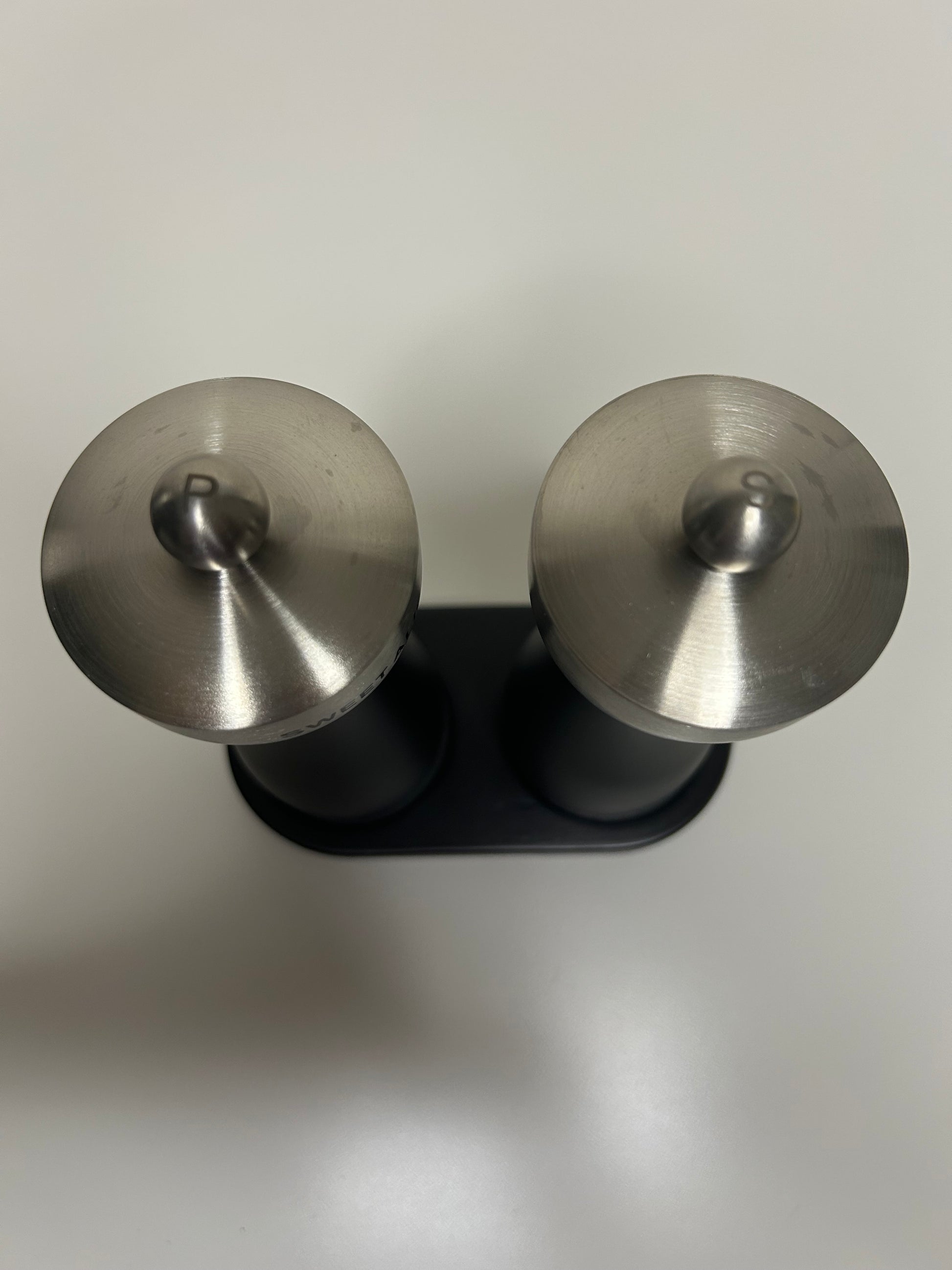 Sweet Alice Wooden Salt and Pepper Mills. New in Box (NIB). Comes with Stand.