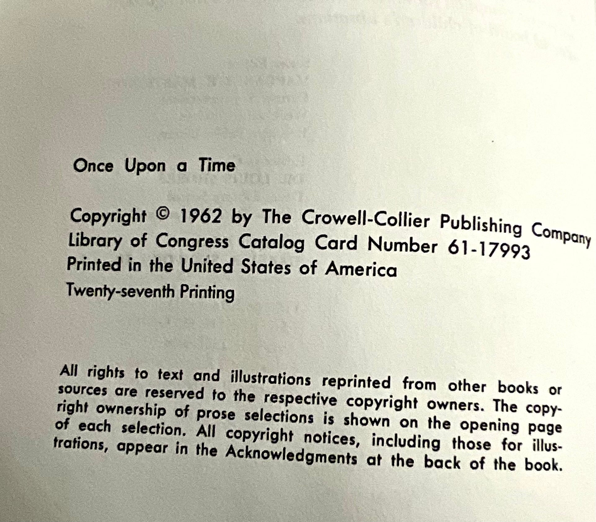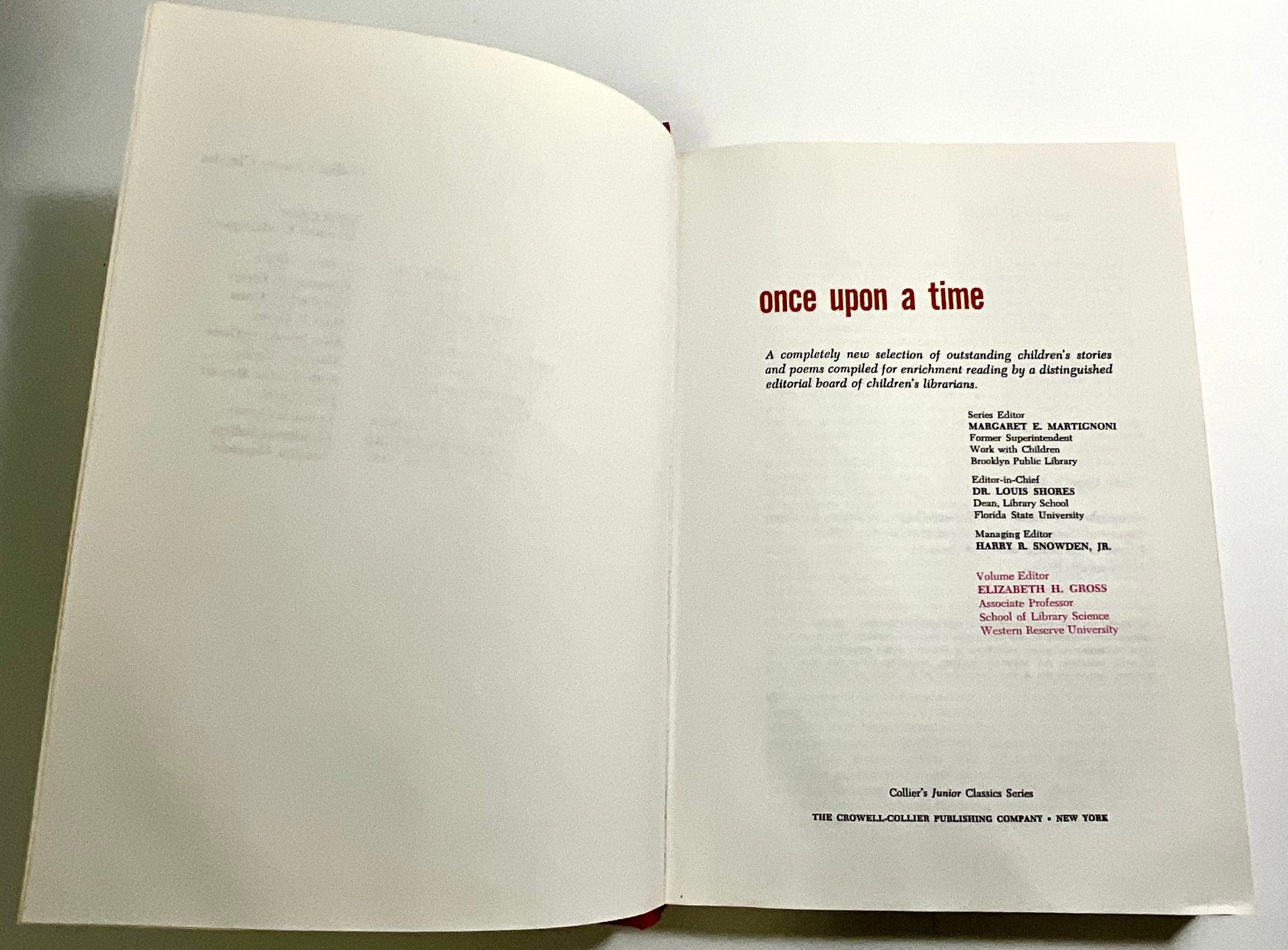 Once Upon A Time Collier's Junior Classics Series #2 Vintage 1962 Hardcover Book Crowell-Collier Publishing Company. 100% of sale benefits charity.