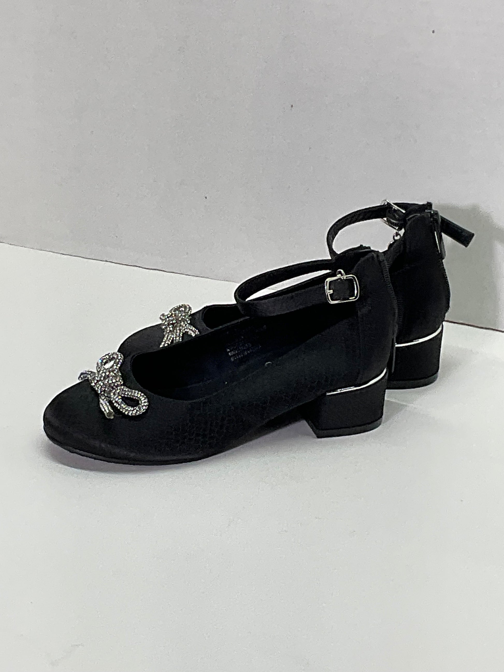 Vince Camuto Girls Black Mary Jane Small Heel Dress Formal Shoes with Rhinestone Bow. Size 13. 100% of sale benefits charity.