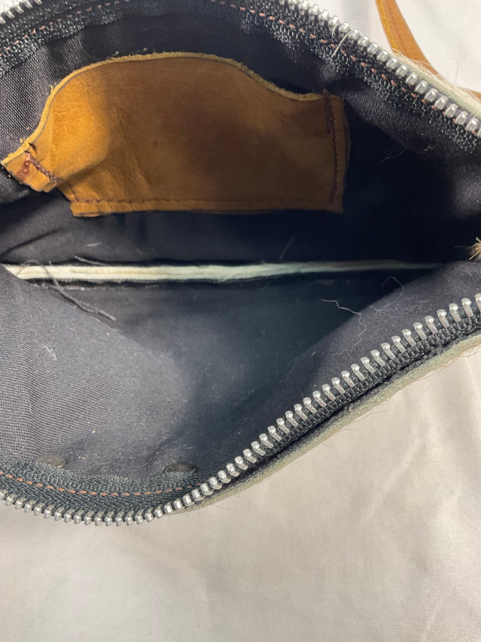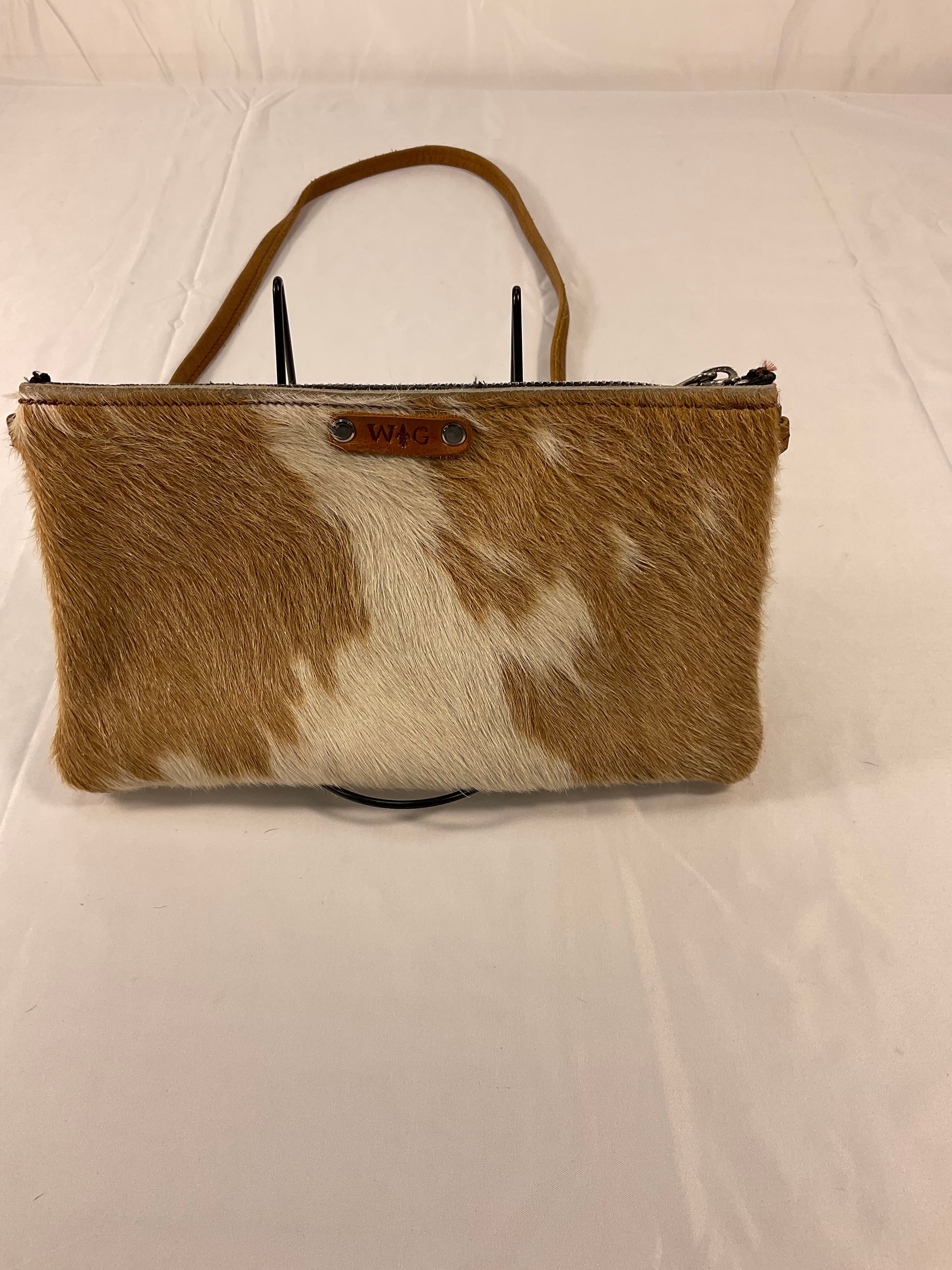 Wild Goose Cow Hide Crossbody Purse - Brown and white. 100% of sale benefits charity. See photos for further condition details. Size 6 in x 10 in.