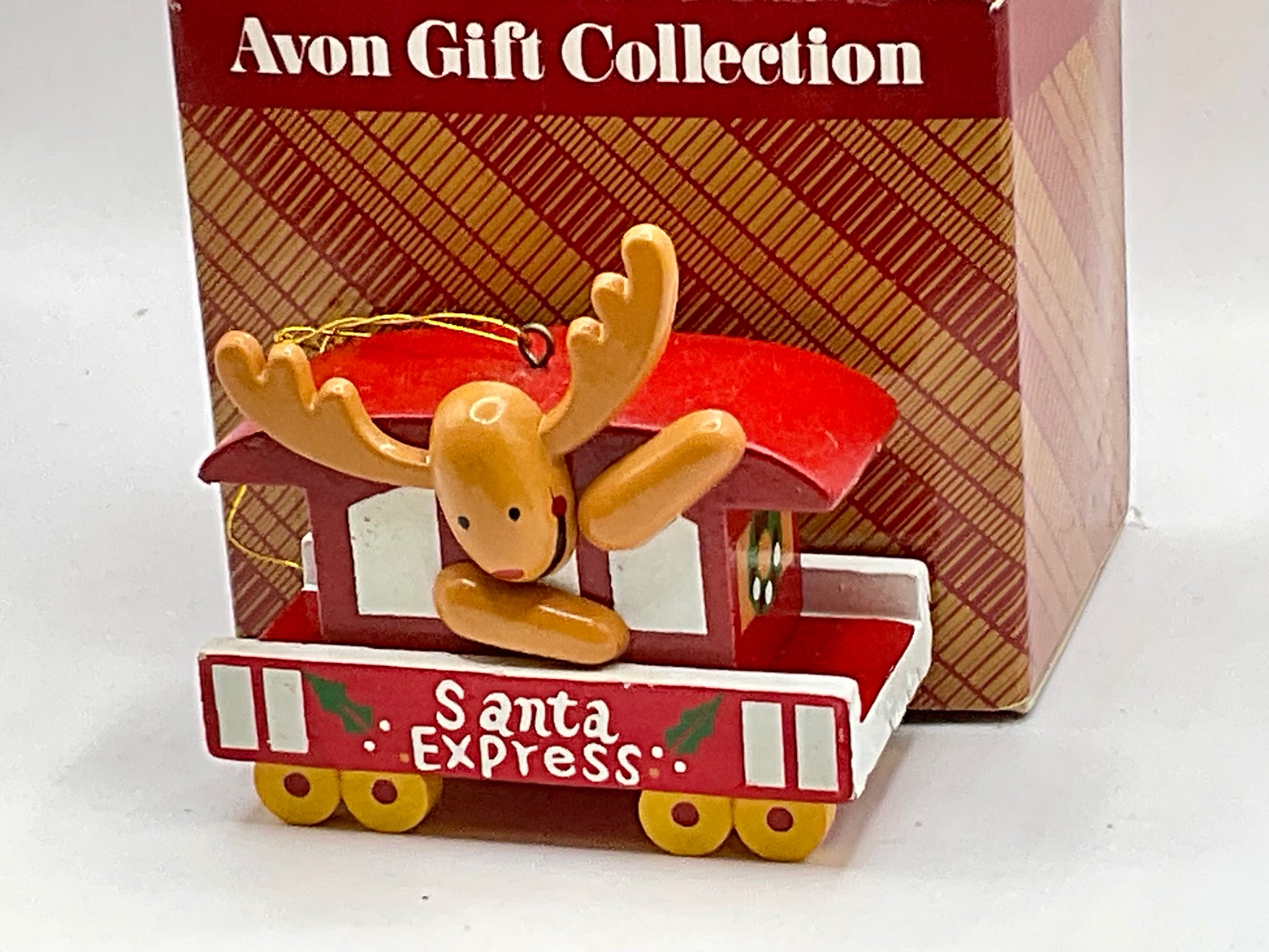 Avon Gift Collection Vintage Santa Express Reindeer Train Car Christmas Winter Holiday Ornament with Original Box. 100% of sale benefits charity.